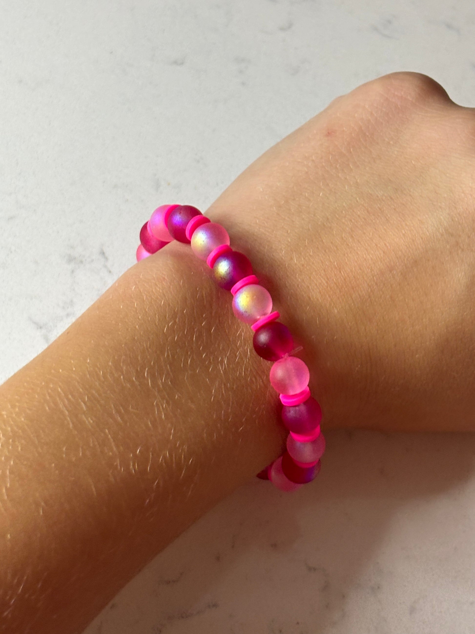 Pink , pink , and more pink glass beaded bracelet